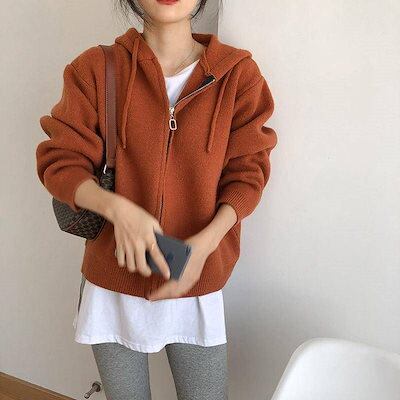 デザイン カジュアル風 レディース アウター カーディガン トップス コーディガン 無地 前開き 羽織 長袖 ファスナー留め ニットセーター フード付き 秋冬 スプリングコート ニット 通学 ニットソ | HUG-L