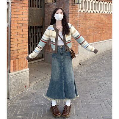 ニットソー レディース 羽織 カーディガン ショート丈 暖か 柔らかい 秋冬 シンプル 羽織り ライトアウター アウター シャギー 冬もの ニットセーター 可愛い ボーダー柄 ふんわり コート ニット | HUG-L
