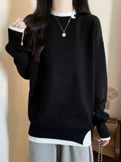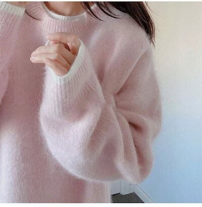 カットソー レディース ニットセーター セーター チュニック チュニック丈 体型カバー 無地 柔らかい もこもこ 可愛い オーバーサイズ 暖かい ニットチュニック 秋冬 切り替え ニット 冬物 プルオ | HUG-L