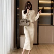 秋 冬 レディーススーツセット ファッション新生活応援ビジネス特集 通勤セットアップ ? ニットワンピース 二点セット プリーツスカート セットエレガント お洒落 長袖 着痩せ おしゃれ | HUG-L