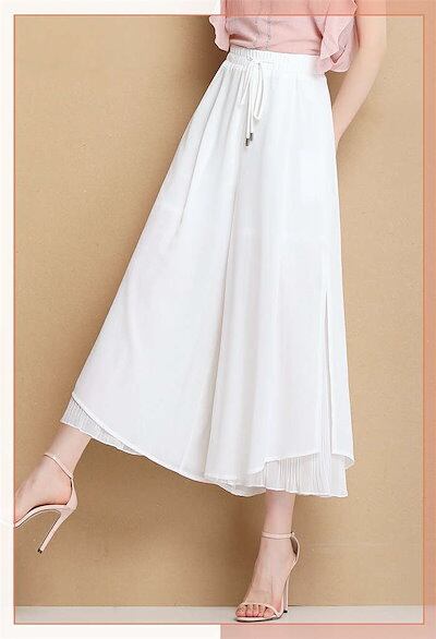 ワイドパンツ レディース ガウチョパンツ ワイドパンツ レディース シフォン 裾プリーツ フレアパンツ ガウチョ パンツ ボトムス スカーチョ ゆったり レディース オシャレ 着痩せ 美脚 おしゃれ | HUG-L