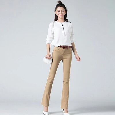 【TIME HOLDER】細身 レディース フレアパンツ スキニーパンツ カラーパンツ レギパン ストレッチ レギンスパンツ ロングパンツ 通勤 黒 ハイウエスト スリム 10分丈 春夏秋冬 ボトムス | HUG-L