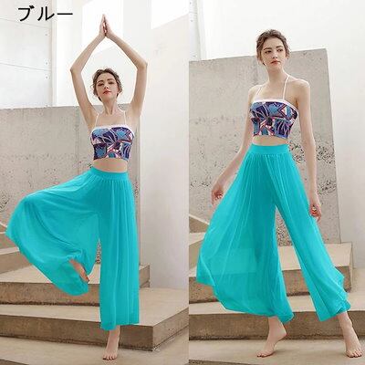 レディース古典ダンス衣装 新作 上下セット 5色 キャミソール へそ出し パンツ ワインドパンツ フレア裾 古典ダンスパンツ ダンスウェア ダンス練習着 ヨガ服 ヨガウェア レッスン着 社交ダンス 古 | HUG-L