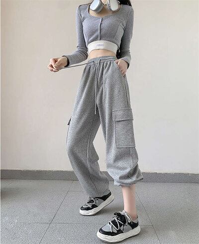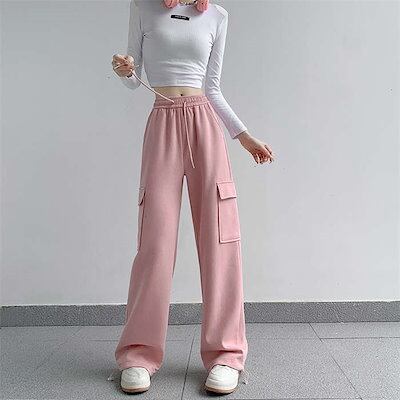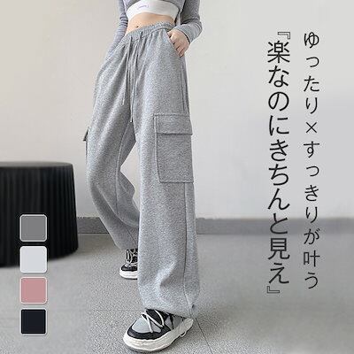 ボトムス 秋 ロング丈 イージーパンツ ワイド ゆったり 無地春 カーゴパンツ ストレート パンツ 楽ちん スウェット ウエストゴム トレンド ワイドパンツ リラックス レディース ゆったり 長ズボン | HUG-L