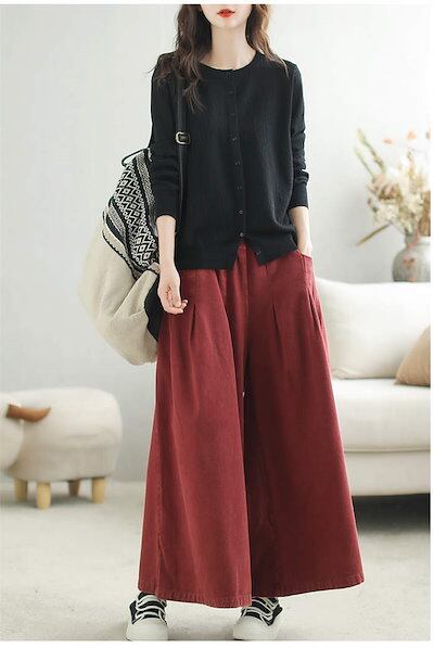 ワイドパンツ ズボン ゆったり コーヒー色 チノ XL きれいめ 体型カバー レッド レディース 大人 ロング ボトムス オーバーサイズ お洒落 パンツ チノパンツ ウエストゴム グリーン L 秋冬 | HUG-L