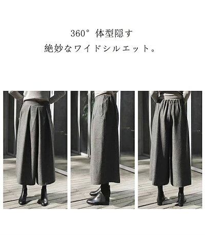 【好評レビュー続出中!】ワイドパンツ レディース 秋冬 ガウチョパンツ 大きいサイズ タック 暖かい スカーチョ 冬 ボリューム ワイド ゆったり 体型カバー アンクルパンツ 九分丈 美脚 細見え | HUG-L
