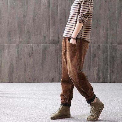 コーデュロイ 秋冬 パンツ ボトムス テーパードパンツ ズボン 裏起毛パンツ レディース 無地 大き