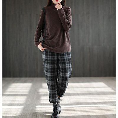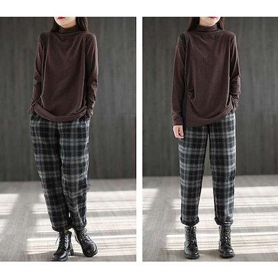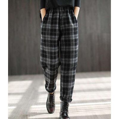ズボンチェック柄ロング丈パンツサルエルパンツリラックスパンツロング丈ウエストゴム起毛レディースボトムス