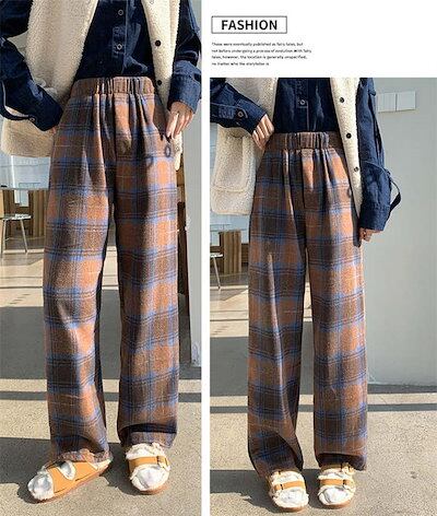 着痩せ あったか ロングパンツ ラシャ パンツ 通勤 厚手 ストレート レディース ラシャパンツ ズボン 柔らかい オフィス オシャレ ワイドパンツ チェック柄 ロング丈 カジュアル ウ | HUG-L