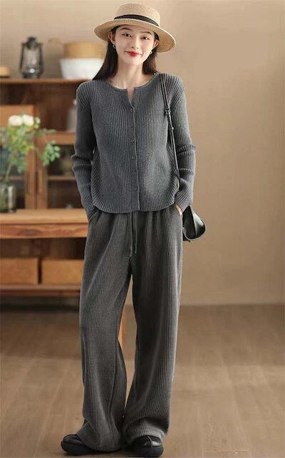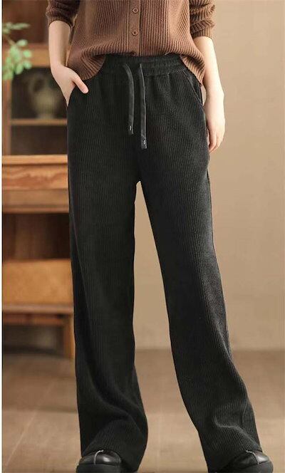 ストレートパンツ ゆったり パンツ 通勤ボトムス ボトムス ワイド ゆったり リブパンツ ウェストゴム 着回し ワイドパンツ レディース ロング丈 無地 シンプル カジュアル コーデュロイ 暖 | HUG-L