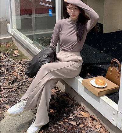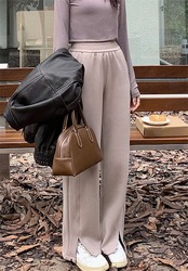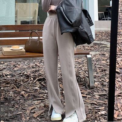 スウェットパンツ ワイド レディース ハイウエスト 部屋着 無地 ロング丈 イージーパンツ ウエストゴム スポーツ ワイドパンツ ボトムス スリット ストレート 防寒 パンツ スウェット | HUG-L