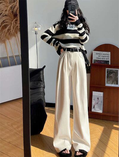 オフホワイト コーヒー色 ズボン ロング パンツ ウエストゴム ストレートパンツ レディース 無地 着回し ワイドパンツ おしゃれ カジュアル 防寒 裏ボア 暖か 裏起毛 コーデュロイ ゆるっと | HUG-L