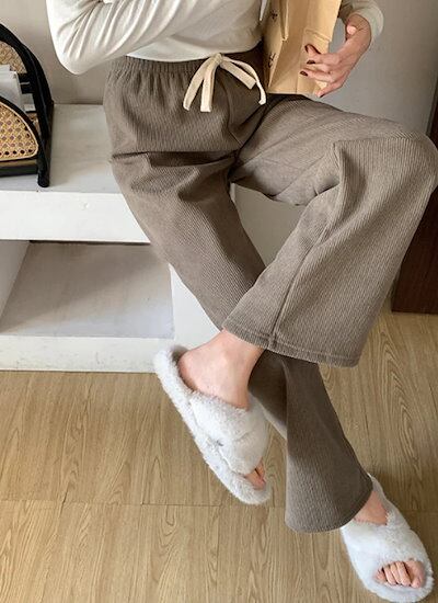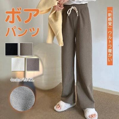 裏ボア ハイウエスト ロングパンツ ゆったり レディース ボアパンツ あったかいパンツ ワイドパンツ ズボン コーデュロイ 裏起毛パンツ あったかい ウエストゴム パンツ 裏起毛 無地 ストレー | HUG-L