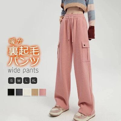 ロング丈 スウェットパンツ 裏ボアパンツ 防寒 イージーパンツ もこもこ シンプル 着回し レディース ふわふわ リラックス 体型カバー カーゴパンツ ワイドパンツ 裏起毛 暖かい 柔らか 微起 | HUG-L