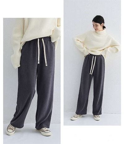 コーデュロイパンツ ワイドパンツ ウエストゴム イージーバンツ リブパンツ ボトムス リラックス レディース 厚手 マキシ 無地 ハイウェスト ロングパンツ シンプル パンツ 暖かい ロング丈 | HUG-L