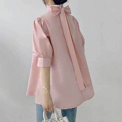 UVカット特集レディース ブラウス長袖ブラウス日焼け防止体型カバーチュニッククルーネックトップス夏 ブラウス ランタン袖 薄手 蝶結び 立ち襟 高級感 ワイシャツ Tシャツ 夏でも着れる!サマーニット | HUG-L