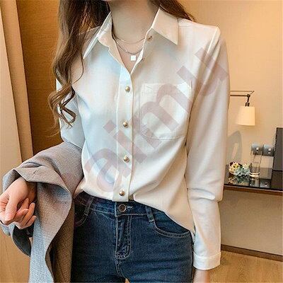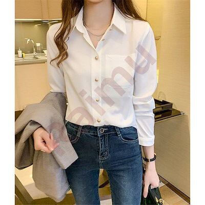 白シャツシャツブラウストップス前開きレディース折り襟長袖無地コーデシフォンベーシックゆったりシンプルカジュアルきれいめオシャレ