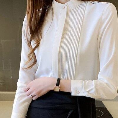 長袖スーツ長袖トップスインナー立ち襟ブラウス透けにくいプリーツスタンドカラー卒業式オフィスフォーマルきれいめシャツ入学式就活ビジネス通勤レディース