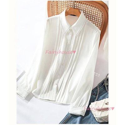 ブラウス レディース 長袖ブラウス 秋 オフィスブラウス 白プリーツ オシャレブラウス韓国風 大人 通勤ゆったりシャツ 折り襟トップス 40代 30代 50代