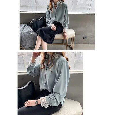 ブラウス レディース 春 フォーマル ブラウス シャツ オフィス 白/ブルー 長袖 オシャレ リボン付き V襟 トップス ブラウス 通勤 OL 大人 上品 新作
