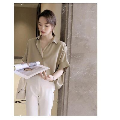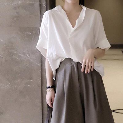 ブラウス レディース 40代 春夏新作 オシャレブラウス 白シャツ 半袖トップス 折り襟 ドルマンスリーブブラウス 大人 通勤OL ゆったりシャツ UVカット 30代