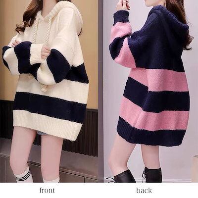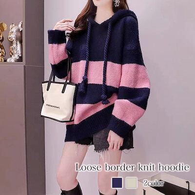 パーカー レディース ルーズボーダーニットパーカー 冬 あったか コーデ 秋 ジャケット オーバーサイズ ジップ ロゴ 韓国 肌着 春 大きいサイズ 大きめ ブランド おしゃれ 人気 長袖 きれいめ