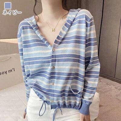 パーカー レディース ボーダー柄ニットパーカー かわいい 肌着 厚手 オーバーサイズ 大きいサイズ 人気 暖かい 春 秋 長袖 おしゃれ ブランド 大きめ ロング 軽量 ジャケット ジップ トレーナー