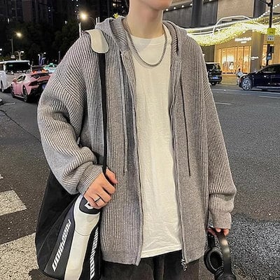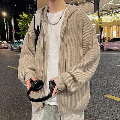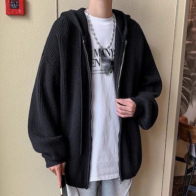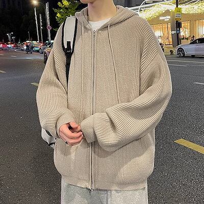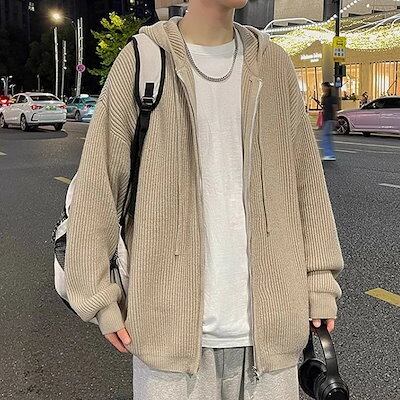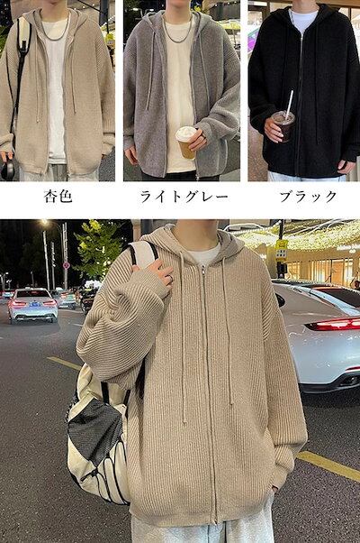 パーカー メンズ レディース ニット ニットパーカー 長袖 ショート丈 ジップアップ ツーウェイジッパー ファスナー フード付き 柔らかい 無地 シンプル アウター 暖かい 防寒 おしゃれ カジュアル