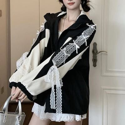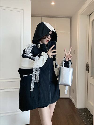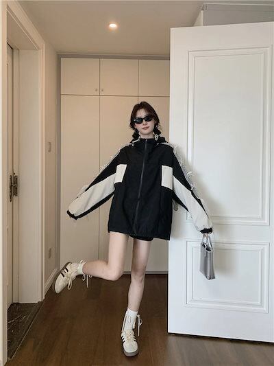 2024秋冬アウターパーカーフード付きチャック長袖細見え秋黒ブラックおしゃれかわいいキュート甘め韓国ファッションストリートレディースお出かけトラック