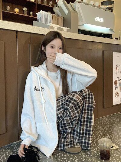 5色今秋冬韓国かわいいレディースフード付きアウターフーディーブルゾン黑白長袖シルエットトップスサイド冬カジュアルファッションサイズお出かけフル丈トラック高校生通学大学生