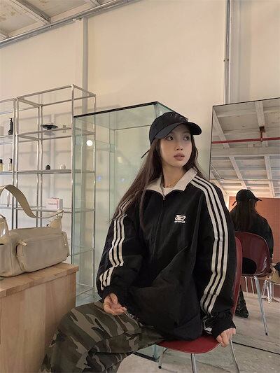 2024秋冬韓国かわいいレディースハイネックスタンドネックアウターブルゾンお出かけ長袖セクシーシルエットトップスサイド冬カジュアルファッションサイズお出かけフル丈トラック