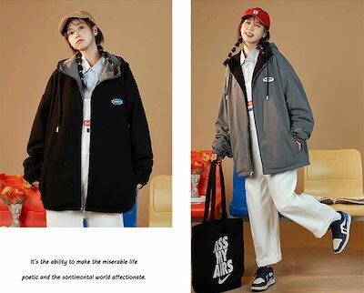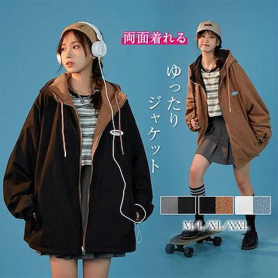 両面着れるジャケットボアコート裏起毛コートレディースフリースジャケットボアジップアップパーカーコートブルゾンパーカーマウンテンパーカージャケット両面着れるアウタートップス登山通勤長袖アウター秋春軽量3 | HUG-L