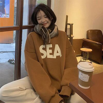 パーカー レディース パーカー コートップス プルオーバー パーカー裹起毛厚いとろみスウェット韓国版ゆったり長袖トップススウェット