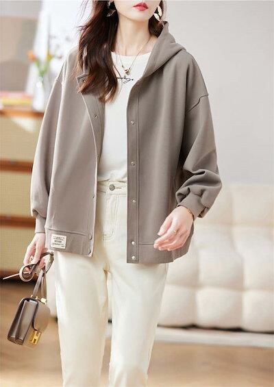 パーカー レディース ボタン スウェット トップス 長袖 裏起毛 秋 冬 春 ライトアウター ボタンパーカー ジャケット ブルゾン フード フーディ 羽織り 厚手 裏ボア 防寒 防風 保温 暖か 無地 | HUG-L