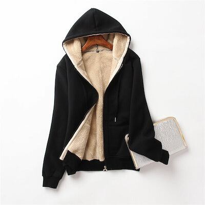 裏起毛 パーカー レディース 冬 大きいサイズ 大きめ 厚手フード付き 極暖 裏ボア パーカー あったか かわいい 裏起毛 スウェット ジップパーカー 長袖 防寒 ボア ブルゾン 秋冬 アウター カジ | HUG-L