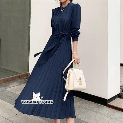 ロング丈ワンピース セレモニースーツ レディース ママ プリーツ 母親 フォーマル 入学式ワンピース スリム シンプル 入園式 長袖