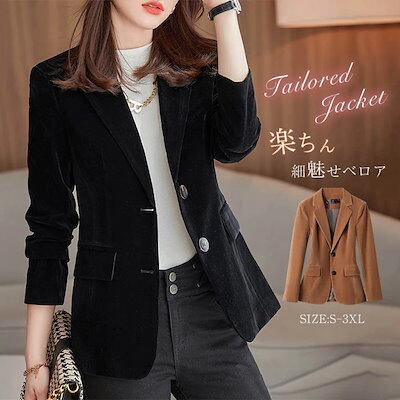 ジャケット レディース ベロア ベロアジャケット オフィス テーラード テーラードジャケット 長袖 ライトアウター 体型カバー フォーマル スーツ 黒 ブラック シンプル 通勤 L お呼ばれ ビ | HUG-L