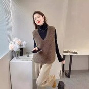 秋冬 流行り!重ね着 ベスト 暖かい もこもこノースリーブトップス 韓国ファッション ベーシックニットベスト 百掛け セーター レディース 無地 Vネック 着やせ 気質 ニットベスト