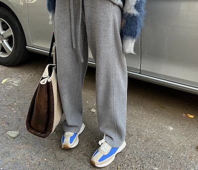レディース パンツ ボトムス スラックス ロング ストレート ポケット ハイウエスト 伸縮性 フリース シンプル カジュアル おしゃれ こなれ感 ラフ 無地 秋 冬 お出かけ 旅行 休日 ショッピング | HUG-L