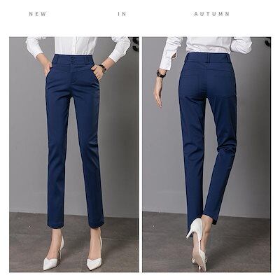 スラックスパンツレディース九分丈通勤黒スラックスストレートズボンボトムス大きいサイズビジネスおしゃれオフィスフォーマルOL着痩せ