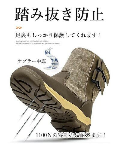 防寒安全靴 メンズ レディース 長靴裏起毛ハイカット 作業靴マジックテープ 安全シューズ 鋼先芯防水 工事現場スマッシュ防止 冬雪国対応 黒