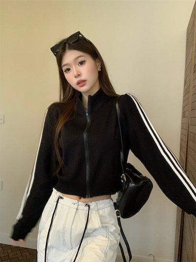 2024 秋 韓国 かわいい ニットネック レディース アウター ブルゾン お出かけ ブラック ライトカーキ アウター長袖セクシートップスサイド冬カジュアルファッション系お出かけフル丈トラック | HUG-L