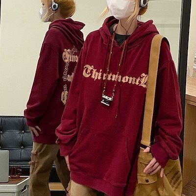 【人気商品】 ワインレッドのガーディアン 韓国 パーカー 復古bf風アルファベット帽子上着国潮ゆるい秋冬ベルベットコート
