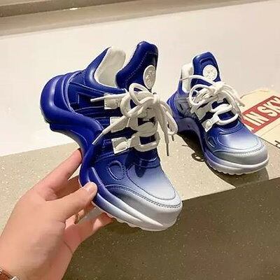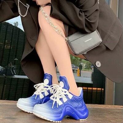 スニーカー シューズ レディース 変形 ハイカット 厚底 ピンク ブルー 靴 個性的 大人かわいい バイカラー グラデーション ユニーク クツ 脚長 美脚 インソール スポーツ ジム ランニング ダイ | HUG-L