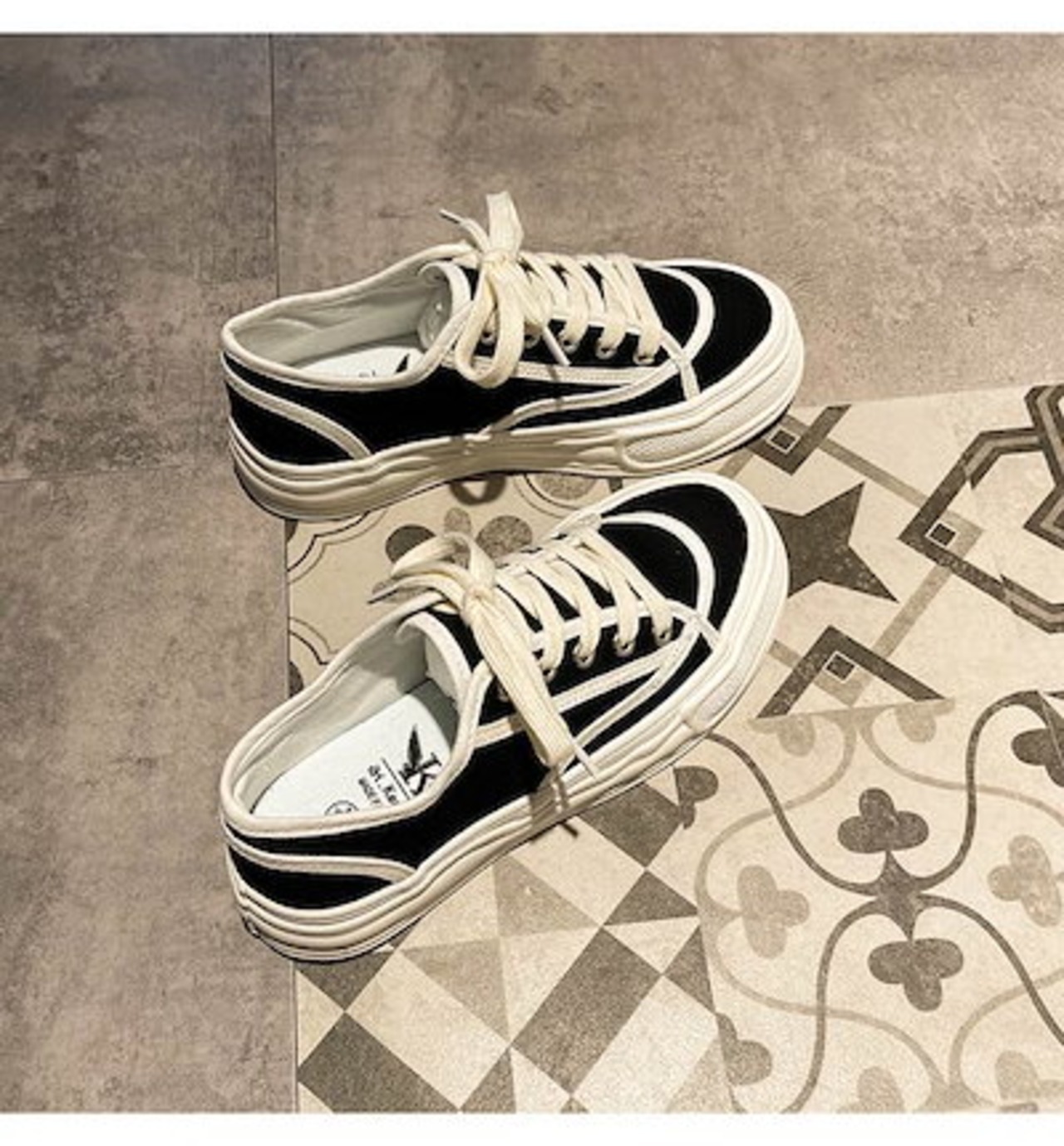 スニーカー シューズ レディース 厚底 靴 ミドルヒール 4cmヒール かわいい 大人可愛い 黒 白 モノトーン ローカット キャンバス シンプル カジュアル おしゃれ お洒落 ラフ こなれ感 無地 | HUG-L