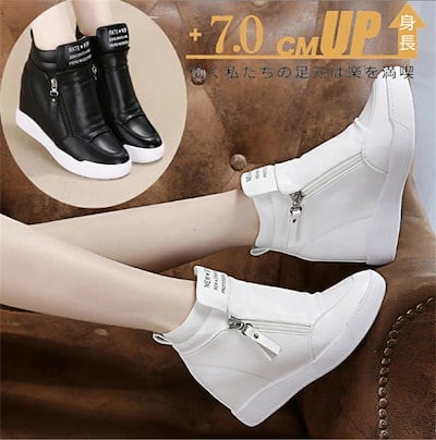 インヒールスニーカー レディース 厚底 スニーカー ハイカット(白 黒 )厚底 ハイカットジップ スニーカー ハイカット スリッポン ヒール7cmハイカットスニーカー レディース靴 シューズ 厚底スニ | HUG-L