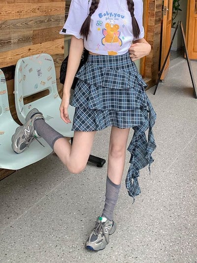 2024春夏スカート ミニ丈 チェック柄 不規則 ハイウエスト 美脚効果 脚長効果 細見え 夏 おしゃれ かわいい 韓国ファッション レディース お出かけ