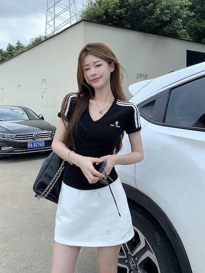 2024 夏 韓国トップス プリント半袖 Tシャツ 韓国 ラウンドネック スリム可愛い風へそ出し ショート おしゃれスリーブ カジュアルサイドコーデ丈 ファッション系レディースフレンチお出かけ T | HUG-L
