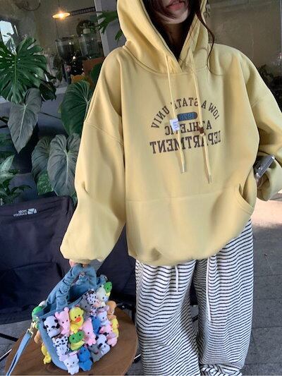 2024秋冬トップス 3色 厚手裹起毛 韓国風 長袖レトロパーカーカジュアルルーズファッション系ゆったり大人っぽかわいいレディースフード付き羽織りサイズきれいめシルエットトレーナー 大学生通学高校 | HUG-L
