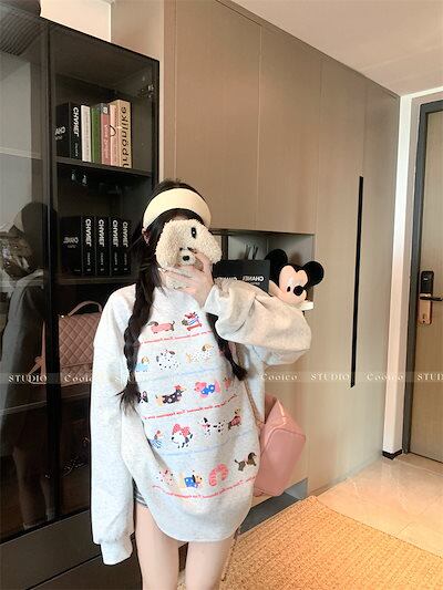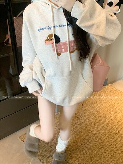 2024秋冬トップス 普段使い 韓国風長袖レトロパーカーカジュアルルーズファッション系ゆったり大人っぽかわいいレディースフード付き羽織りサイズきれいめシルエットトレーナー 大学生通学高校 | HUG-L